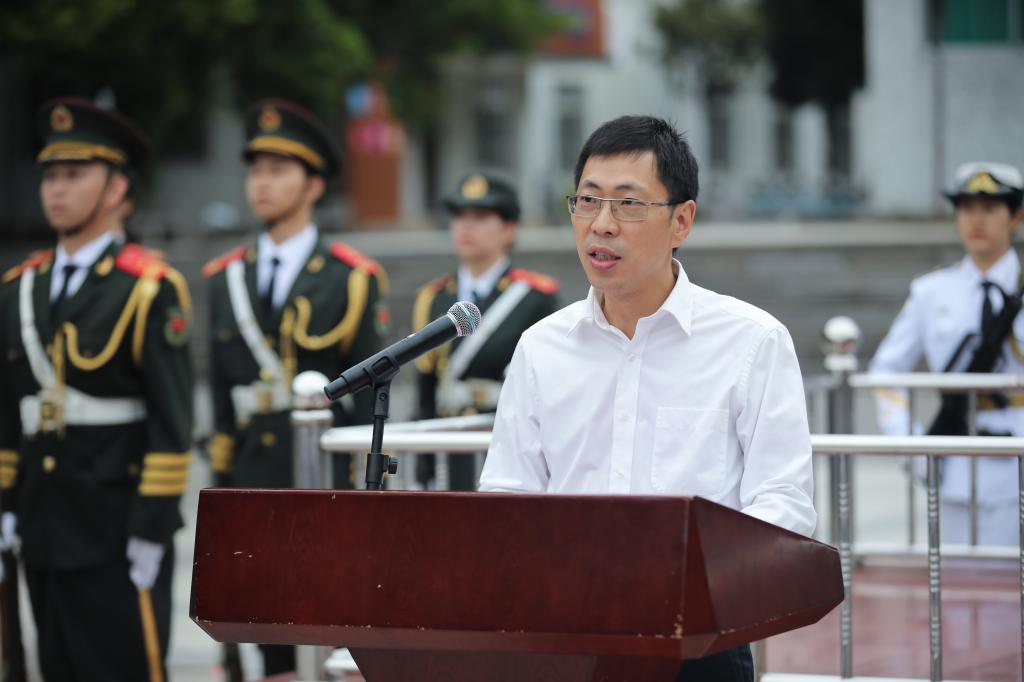 随着国旗护卫队仪仗队踏着整齐划一的步伐护送鲜艳的五星红旗入场,仪式正式开始。全体齐唱国歌,在师生们的注目礼下,五星红旗冉冉升起,迎风飘扬。。校党委学工部部长王凯在讲话中提出三点希望,希望桂航学子们要志存高远,坚定理想信念;勤学善思,追求广博精深;德才兼备,逐梦时代征程。国旗护卫队学生代表刘敏以“生而逢盛世 青年当有为”为主题发言,与同学们共勉。
