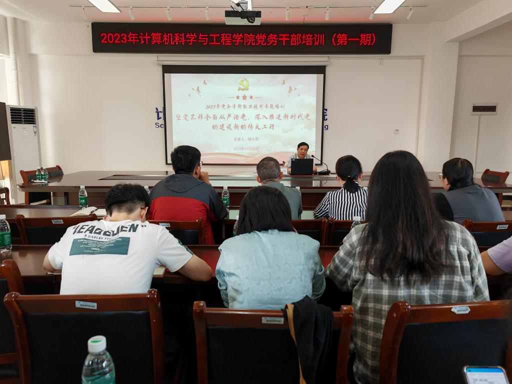 10月25日,计算机科学与工程学院党务干部培训班在启天楼335会议室开展第二次专题学习,邀请校学工部部长王凯,纪委副书记、纪委办公室主任杨小劲来我院授课。学院党委委员、各支部书记、支委、组织员参加了此次培训。
