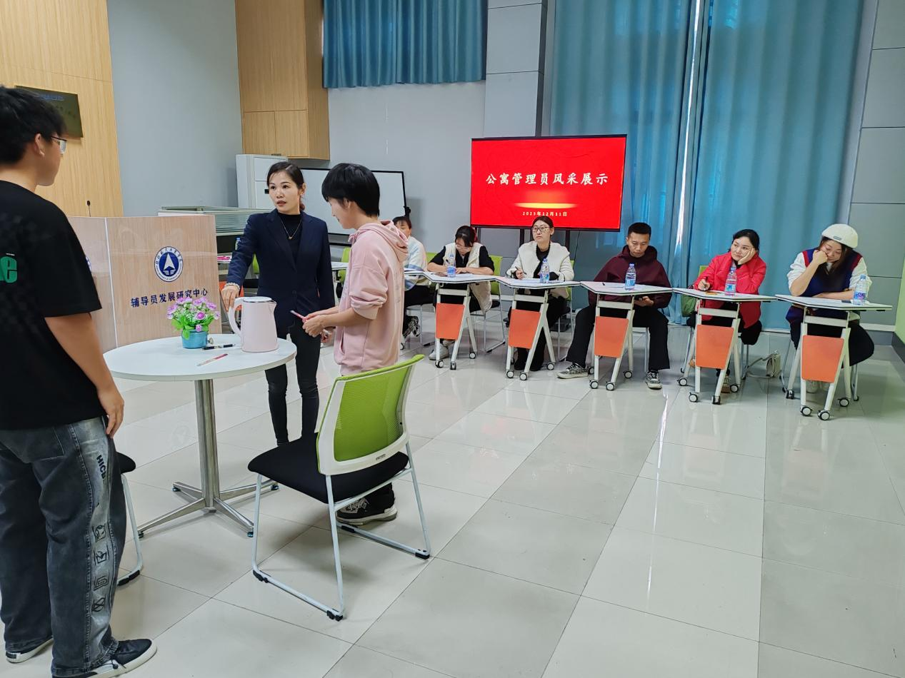 据悉,本次公寓管理员能力大赛评选活动分理论考试、技能比拼、风采展示等三个环节。理论考试环节,考核了解公寓管理员对工作制度、工作规范、安全知识和突发事件处理等方面的熟知程度;技能比拼环节,通过比赛形式整顿内务卫生不合格宿舍,切实发挥教育管理服务作用;个人风采展示环节,管理员结合对工作岗位的认识感悟做发言交流,针对学生突发事件进行情景模拟。经过激烈角逐,最终10名管理员获评“十佳公寓管理员”荣誉称号,37名管理员获得单项奖。
