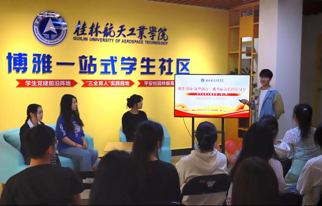 本次优秀宿舍长经验分享活动以“朋辈引领 筑梦前行”为主题,共邀请3名2023年优秀宿舍长“引航员”与大家畅谈心声、分享经验。首先,他们从“宿舍长是谁”这一问题出发,引出宿舍长作为加强宿舍安全管理、守牢宿舍安全底线、增强舍友相互交流的责任人和协助人的重要作用;接着,他们分别从“如何营造良好的宿舍学习环境”“如何处理舍友之间的矛盾”以及“如何提升个人能力与舍友共进步”等方面分享自己的个人体会。最后,在交流互动环节,“引航员”们耐心地对同学们提出的宿舍安全、纪律、卫生等多个问题一一进行解答,气氛热烈而融洽。