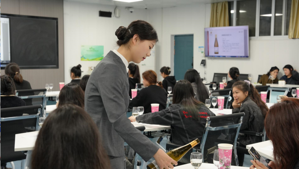 pp电子航空服务与旅游管理学院张艳梅老师,线下讲解了六款代表中国葡萄酒产区的葡萄酒,并带领学生逐一品鉴。学生在此次公开课中拓宽了视野,树立了对中国本土葡萄酒产品的自信,提升了职业技能。