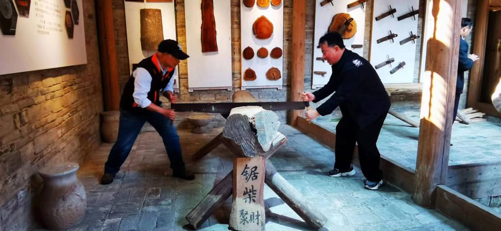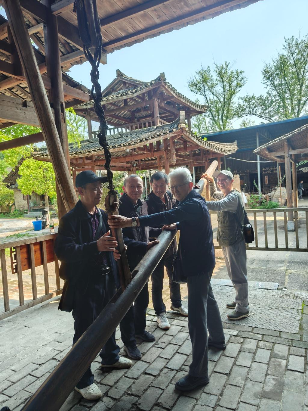 最吸引老同志的还是油榨坊,师傅抱起榨油柱,老同志们轮流协助,喊着号子,非常起劲。