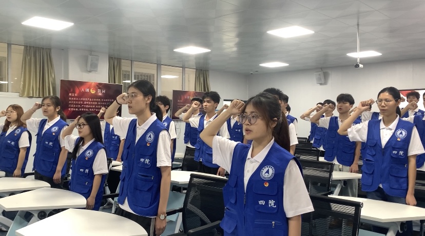 在分享环节,团员们围绕活动主题勇于发言。张国强同学表示,通过这次团课,让我认识到我们青年大学生需要时刻保持高度的责任感2008年,学校研制的“千里眼无人机”及时在汶川大地震传回了第一张震后图片信息,为抗震救灾作出了重要贡献。这段故事也激励我努力学习,将知识转化力量,时刻为维护国家安全做好准备,为我国国家安全作贡献。邓凯斤同学表示,我深知生态安全是维护自然生态系统稳定与健康的状态,是人类社会可持续发展的基础。学校搭建起“漓江流域空﹣天﹣地﹣水”一体化生态环境智能监测网络系统,确保了生态安全。这也坚定我学好专业知识的决心,在今后为维护国家生态安全贡献力量。随即,团员们重温了入团誓词,展现强国有我的使命与担当。