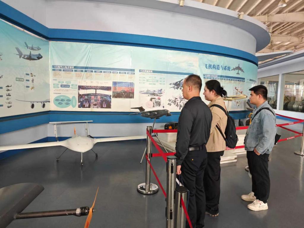 刘建强陪同陈欢一行参观了西安航空学院的飞行器学院航空工程实验教学中心、大学生航空科技创新中心、通用航空工程技术中心。