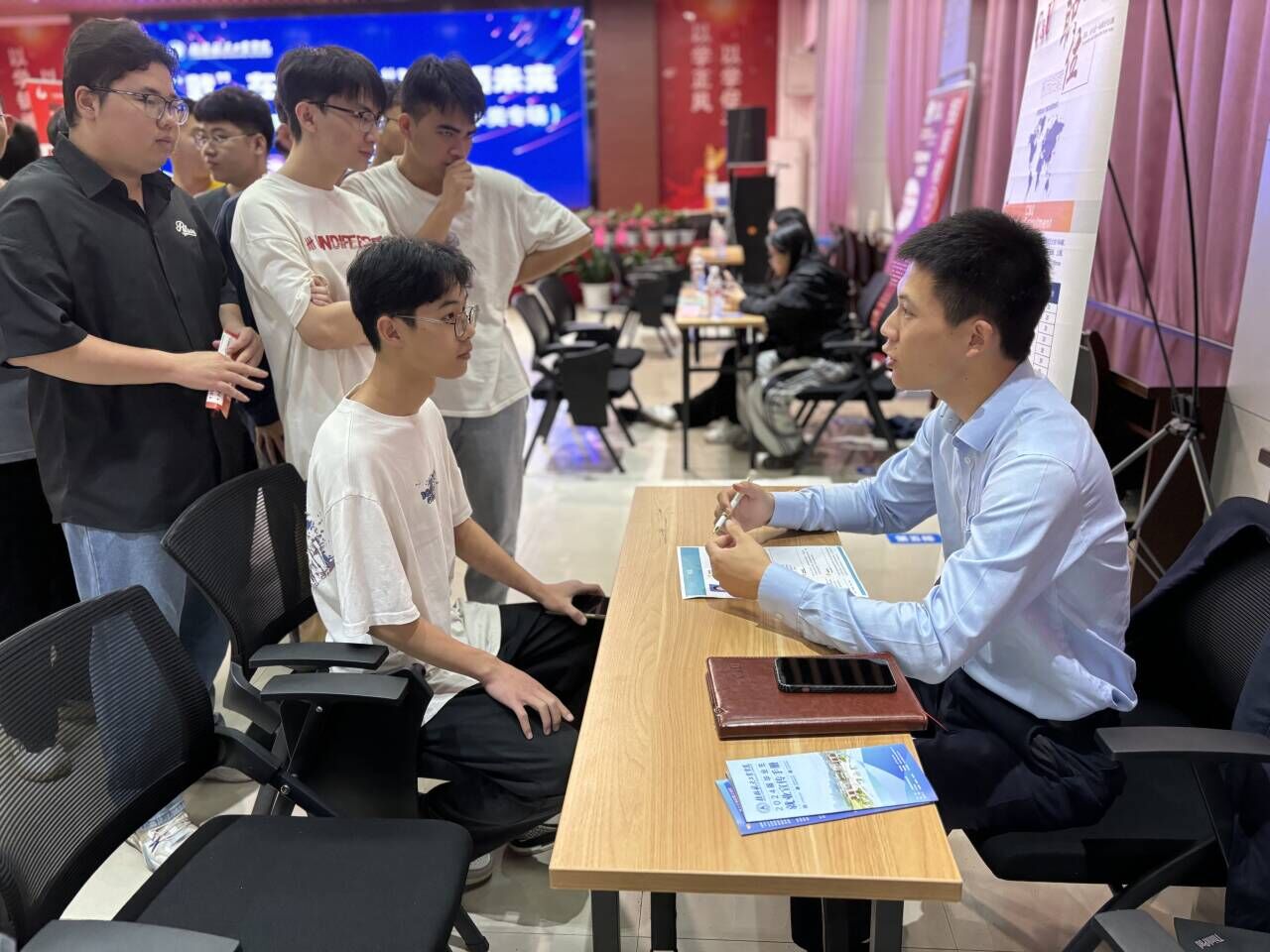 招聘会现场气氛热烈,求职毕业生们向心仪单位投递简历,积极与招聘人员交流沟通,深入了解单位文化、发展前景、薪资水平等情况。
