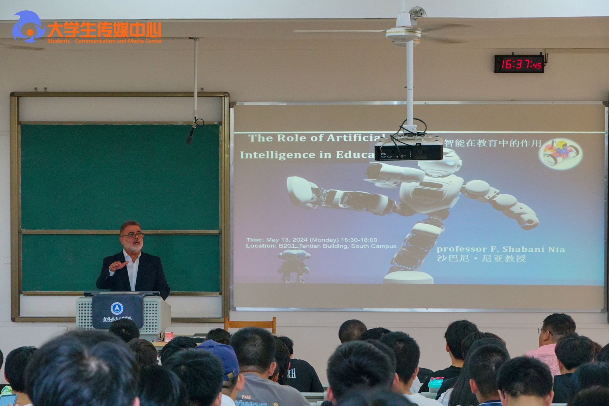 5月13日下午,Fereidoun Shabani Nia博士应pp电子桂航大讲坛邀请,在探天楼B201作了题为“The Role of Artificial Intelligence in Education”(“人工智能在教育中的作用”)的专题讲座,全校共200余名师生参加了此次讲座。讲座由电子信息与自动化学院相关负责人主持。