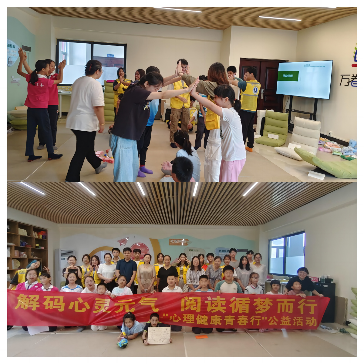 心理社会公益服务不断线。暑期是学生拓宽视野、增长新知的黄金时期,学生心理健康教育与咨询中心精心策划暑期社会心理健康服务公益活动,带领“解码心灵元气,阅读寻梦而行”社会实践学生团队走出校园接触社会,开展“儿童情绪社交团体”“初中生理解与沟通团体”“ 阳光减压团体”等3场人际团体辅导,开展心理健康知识科普、心理志愿服务、心理状况调研等活动,探索德育塑心、智育启心、体育强心、美育润心、劳动健心“五育融合 育心育人”的实践教育模式,主动帮助受众群体构建良好的亲子沟通关系,共同守护儿童、青少年心理健康。