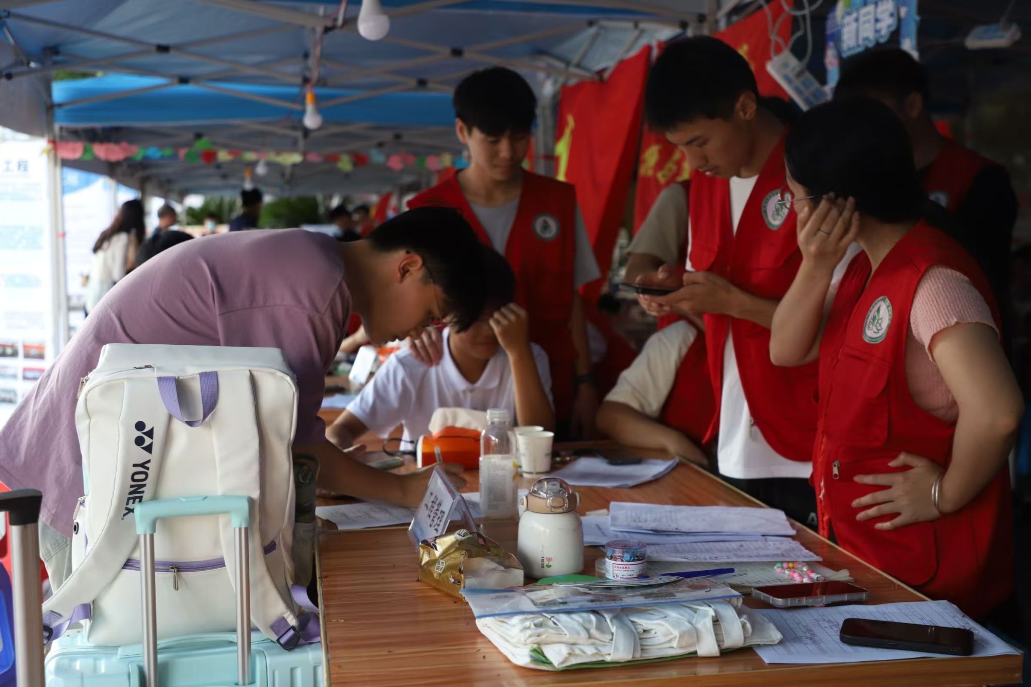 学院师生党员以饱满的热情投入到迎新工作中,尤其是大学生党员更是冲在一线,不怕酷热和辛劳,以实际行动践行初心使命、彰显责任担当。在迎新点,党员先锋示范岗格外醒目,学生党员们佩戴党员徽章、身穿志愿者服,为报到新生介绍流程、解决疑难问题,主动引导新生及家长前往各报到点,引导他们完成注册、报到、入住等手续,全程彰显学院的人文关怀与高效服务,以实际行动诠释了党员的先锋模范作用,展现了大学生党员的优秀风采,为新生入学增添了温暖与力量。