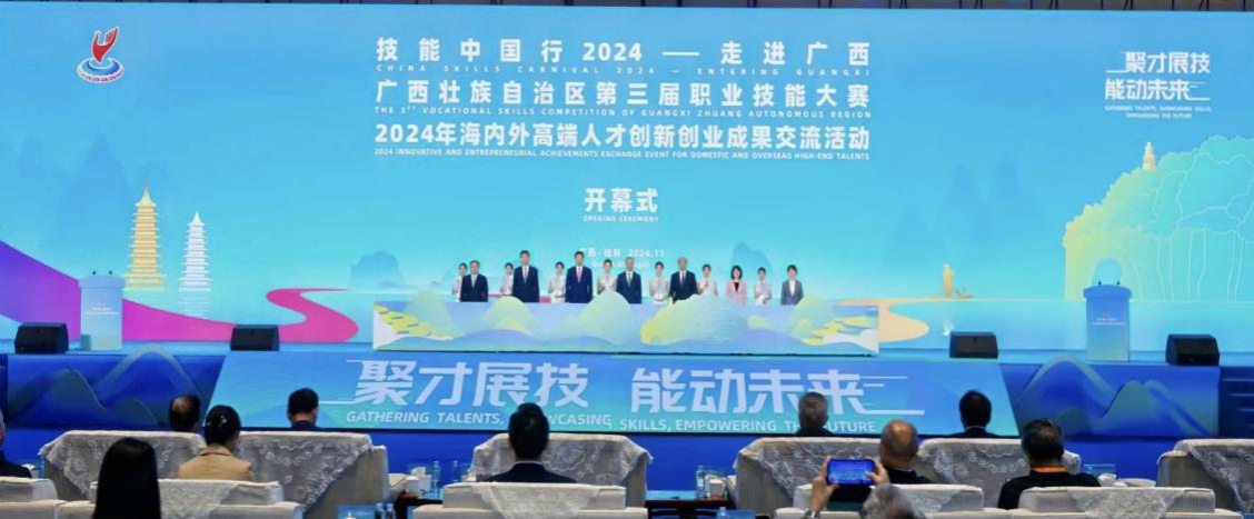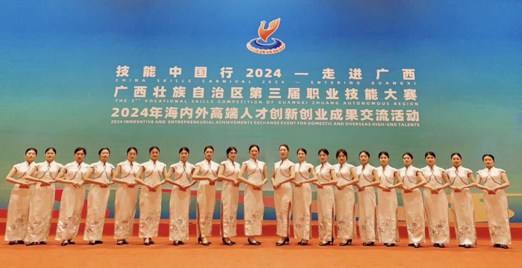 近日,广西壮族自治区第三届职业技能大赛在桂林举办。本届赛事由广西壮族自治区人民政府主办,广西壮族自治区人力资源和社会保障厅、桂林市人民政府等单位共同承办,主题为“聚才展技,能动未来”。航空服务艺术与管理专业学生参与了此次盛会,为赛事提供了志愿引导和礼仪服务,赢得了广泛赞誉。圆满完成了包括、颁奖仪式及闭幕式在内的多项重要活动的礼仪任务。