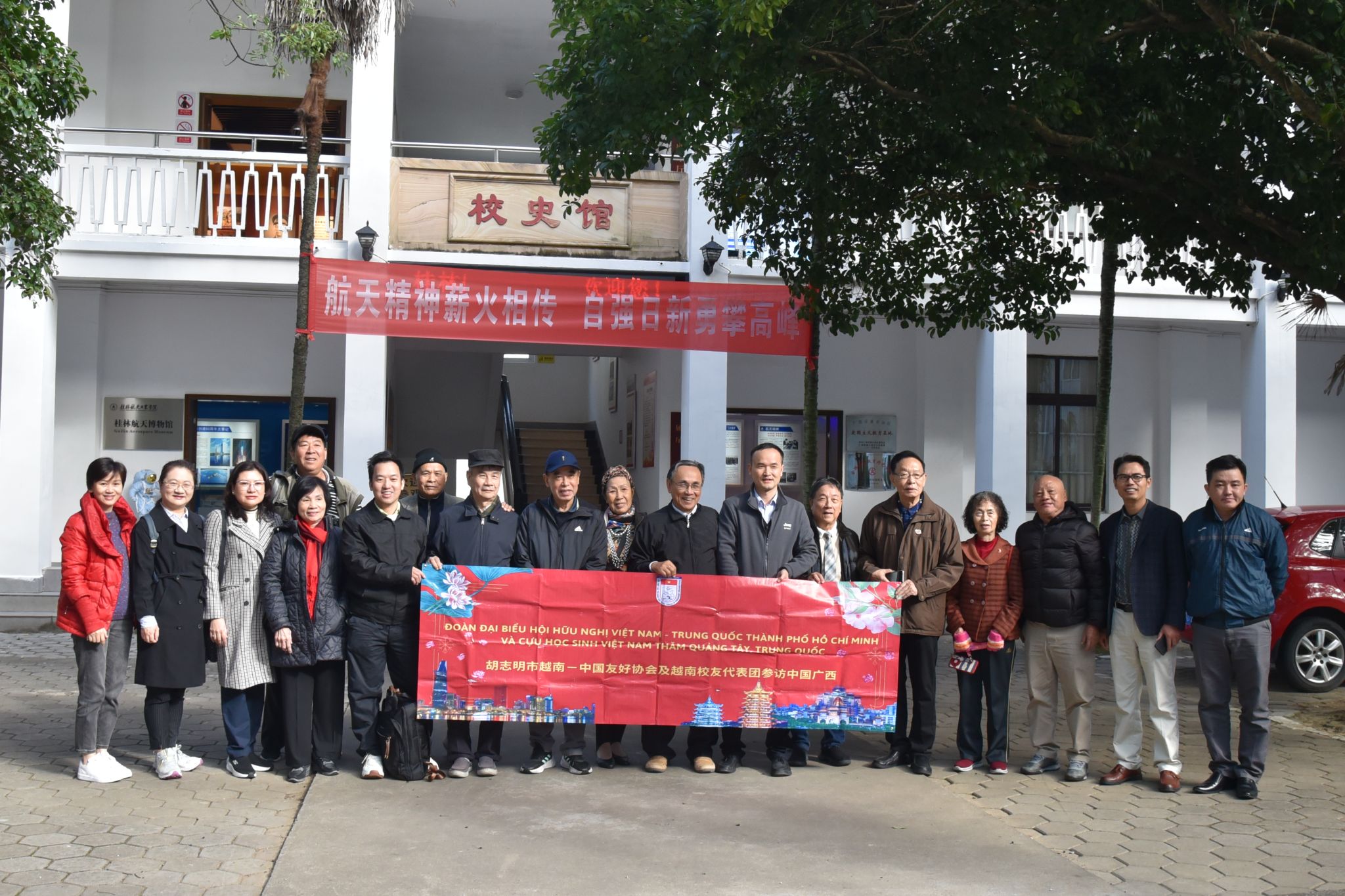 近日,为继承和发扬中越传统友谊,重温中越友好交往历史,胡志明市越中友协组织友好人士、原留华学生代表一行14人到访pp电子考察,并实地参观北校区校史馆和南校区钱学森广场等场所。国交处、校史馆相关负责人参与了接待工作。