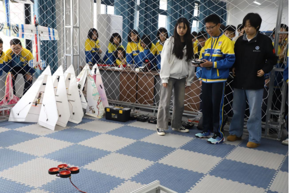 在大学生志愿者的带领下,同学们参观了航天博物馆、汽车实训中心、航空宇航学院,认真聆听志愿者的讲解,积极参与互动体验,不仅学习了航空航天知识,还坐上了航V车队的赛车,并亲自动手操作无人机,在沉浸式的体验中,激发出对科学世界的探索。