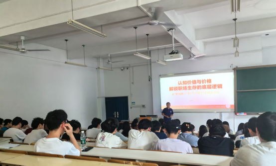 在接下来的报告中,刘亚东结合自身职业发展经验,围绕生涯规划、简历制作、就业形势、行业趋势等关键话题展开深入探讨。他指出“职业发展不是一成不变的路径,而是需要不断调整和优化的动态过程”,建议同学们在求职前明确自身优势,结合行业需求制定短期和长期目标,通过实习、项目实践等方式积累经验,提升就业竞争力。他结合实际案例,指导同学们如何突出专业优势,量化项目成果,使简历更具吸引力,并从自身招聘经验层面分享了面试技巧和职场适应策略,帮助同学们在求职过程中少走弯路。