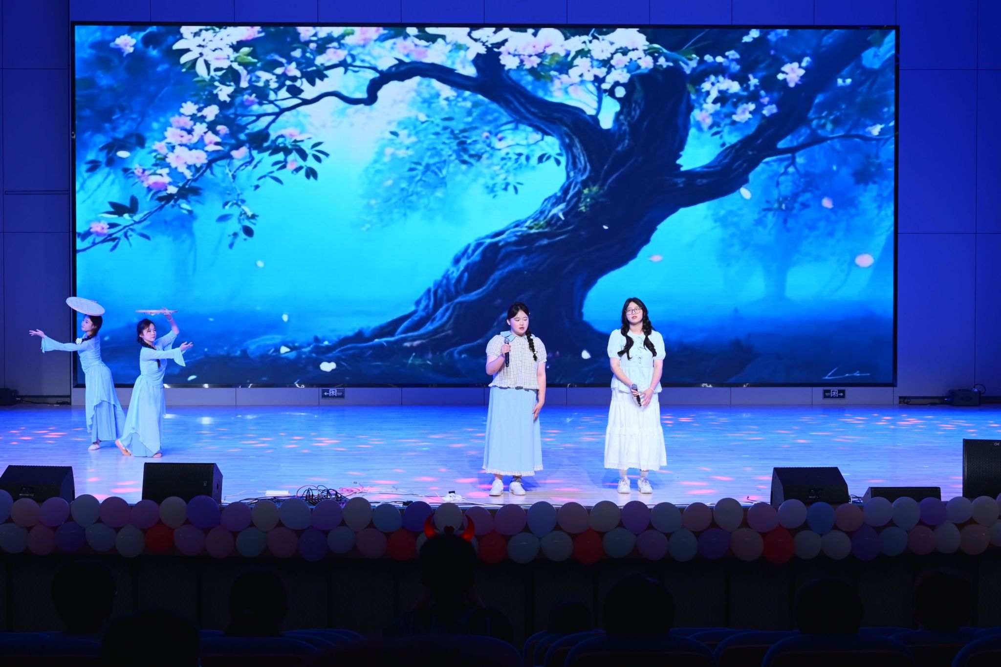 音乐节开场由大学生艺术团器乐队点燃了全场观众的热情;第一篇章青枝生韵由器乐队和歌唱队带来的《不能说的秘密》、《茶花开了》,带领观众感受那份独属于青春的浪漫与遗憾;主持队通过朗诵《大英博物馆》,让观众感受流落文物跨越百年的泣血呼唤。当“归家路”的曙光初现,我们坚信:山河无恙,国宝终将重沐华夏阳光;舞蹈队通过舞蹈《青年·逐光梦》,展现出心中有梦,所以无畏无惧;因为眼中有光,所以奋斗不息;第二篇章开篇人工智能学院周滨老师引吭高歌《游牧时光》,让歌声带观众触摸那份属于游牧民族的浪漫与苍茫;紧接着演绎队带来了情景剧《高考结束的那一天》;街舞《Pay attention》热情奔放、激人奋进,用舞蹈诠释了“热烈的不是青春,而是我们”,引得观众们阵阵尖叫;第三篇章艺境共生以礼模队走秀《时空褶韵》开篇,华夏文明孕育新中式美学复兴,青春活力与梦想在此汇聚;歌曲《一个像夏天一个像秋天》、《行走的鱼》则为观众带来了一场美妙绝伦的视听盛宴;影舞社《舞力觉醒》展现种子向阳而生,雏鹰振翅而飞——梦想是生命之诗,希望为灵魂之翼;晚会最后,大学生艺术团合唱队带来合唱《鹿 be free》,并带领全场师生共同唱响校歌《蓝天是我们永远的向往》,晚会在全体师生的合唱声中圆满落下帷幕,歌词中“尚德博学 慎思笃行”的校训、“艰苦奋斗 自强不息”的桂航精神在夜空中久久回荡,将铭记于每位桂航学子心中。