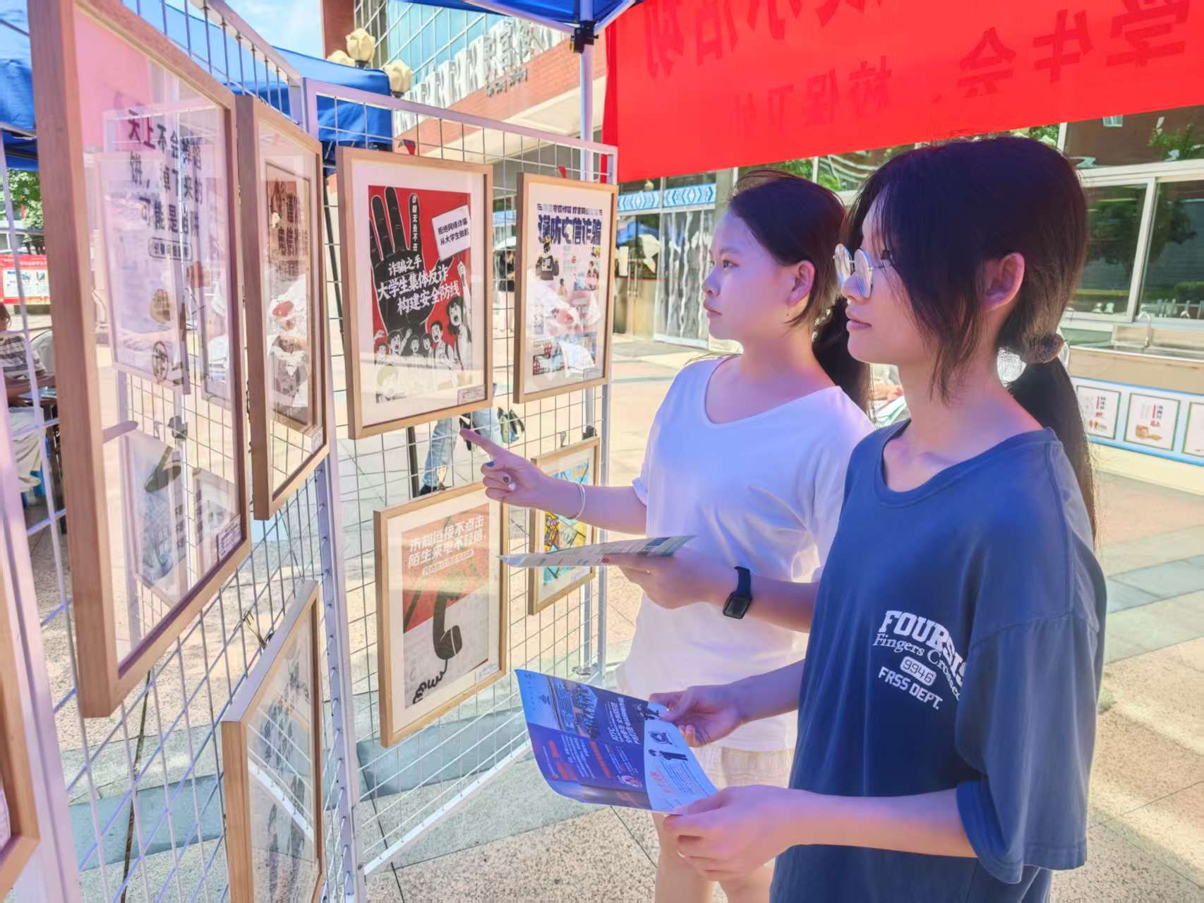 为深化校园安全教育,提升师生防范电信网络诈骗意识,6月26日中午,由“艺心向党 艺航同行”美育工作室、学校团委学生会、校保卫处联合主办,朝阳乡派出所协办的“防电信网络诈骗海报设计大赛优秀作品展”在南校区食堂门口举行。