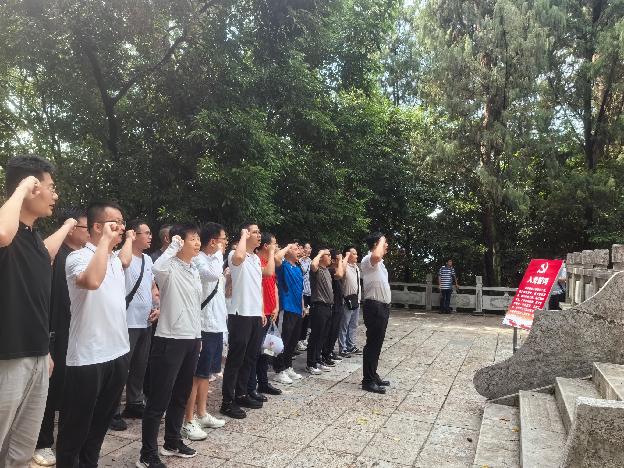 活动首站走进恭城烈士纪念馆,在庄严肃穆的烈士纪念塔前,全体教职工整齐列队,面向鲜红党旗庄严宣誓,铿锵誓言回荡在青山翠柏间。通过讲解员对革命先烈剿匪事迹的生动讲述,大家深切感受到革命年代共产党人“甘洒热血铸忠魂”的英勇无畏精神,深刻领悟“红色基因”与新时代廉洁文化的传承脉络。