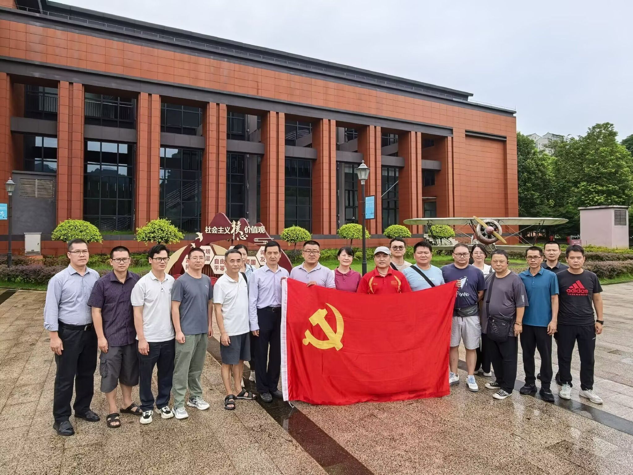 在柳州市军事博物园,一件件曾叱咤风云的战机、坦克、火炮等退役装备静默矗立,无声讲述着国防科技从艰难起步到自立自强的壮阔征程。旧营房前,全体党员庄严肃立,面向党旗重温铿锵誓言。厚重的历史遗存与铮铮誓言交织,使大家深刻体悟到今日和平的来之不易,更坚定了将伟大建党精神与国防教育熔铸于立德树人事业之中的信念。