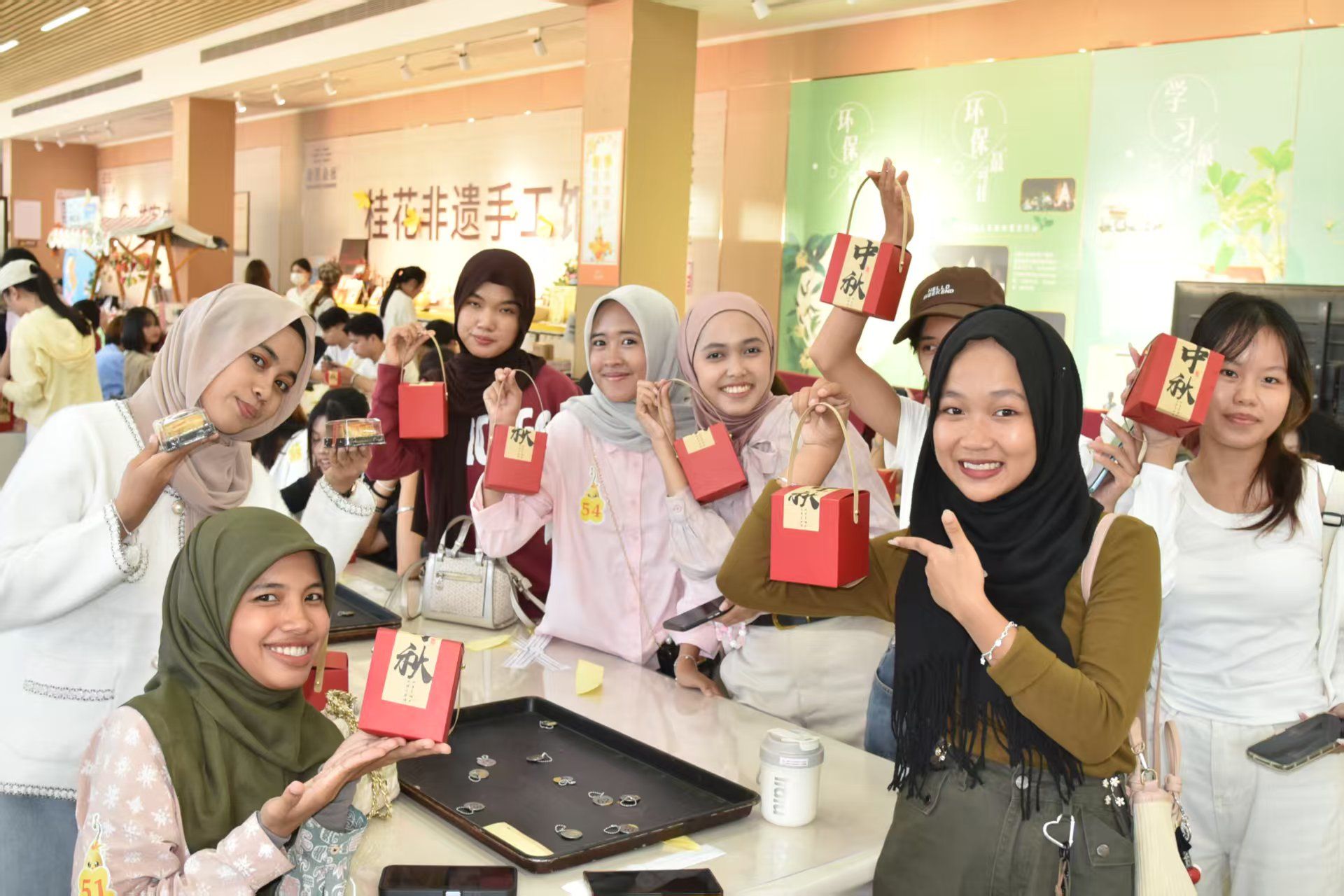 9月27日,pp电子国际教育学院组织2025年来华留学生新生前往桂花公社参加中秋文化体验活动,共同感受中华传统节日氛围,来自越南、泰国、印度尼西亚、老挝和柬埔寨等国的留学生们参加了此次活动。