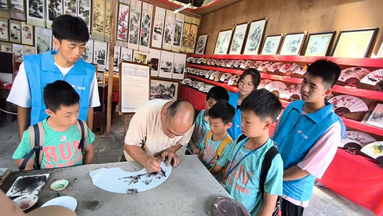 服务队积极探索“非遗文化+红色教育”新路径。在桂林阳朔莫氏扇艺坊,队员们在非遗传承人指导下,组织当地青少年将火箭、卫星、科学家肖像等元素绘入团扇扇面。孩子们一边学习传统工艺,一边了解航天故事,在动手实践中接受爱国主义熏陶。一把把融合航天梦与民族技艺的扇子,成为红色精神传播的生动载体。