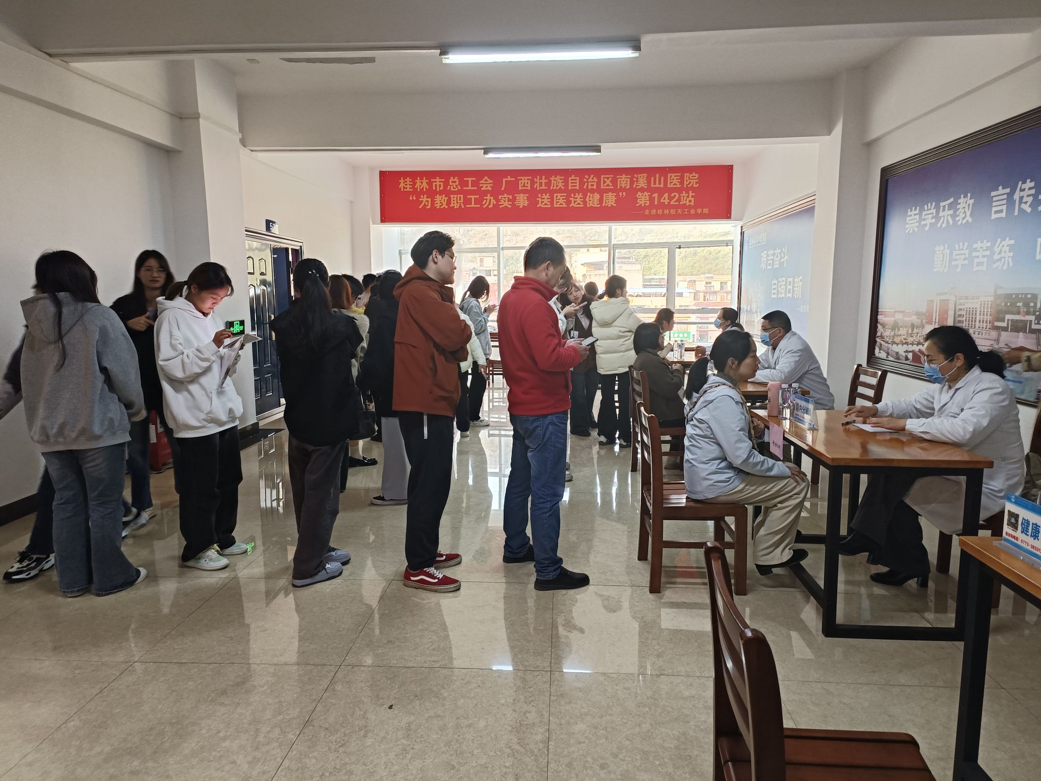 为切实守护教职工身心健康,践行“为职工办实事”的服务理念,12月2日下午,校工会于南校区飞天楼520会议室组织健康专题讲座暨义诊活动。本次活动为桂林市总工会、广西壮族自治区南溪山医院联合开展的“送医送健康进基层”系列活动第142站,学校100余名师生代表参与活动。
