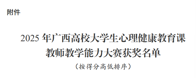 近日,广西壮族自治区教育厅公布了2025年广西高校大学生心理健康教育课教师教学能力大赛获奖名单,pp电子杨恋老师荣获教学能力大赛二等奖。