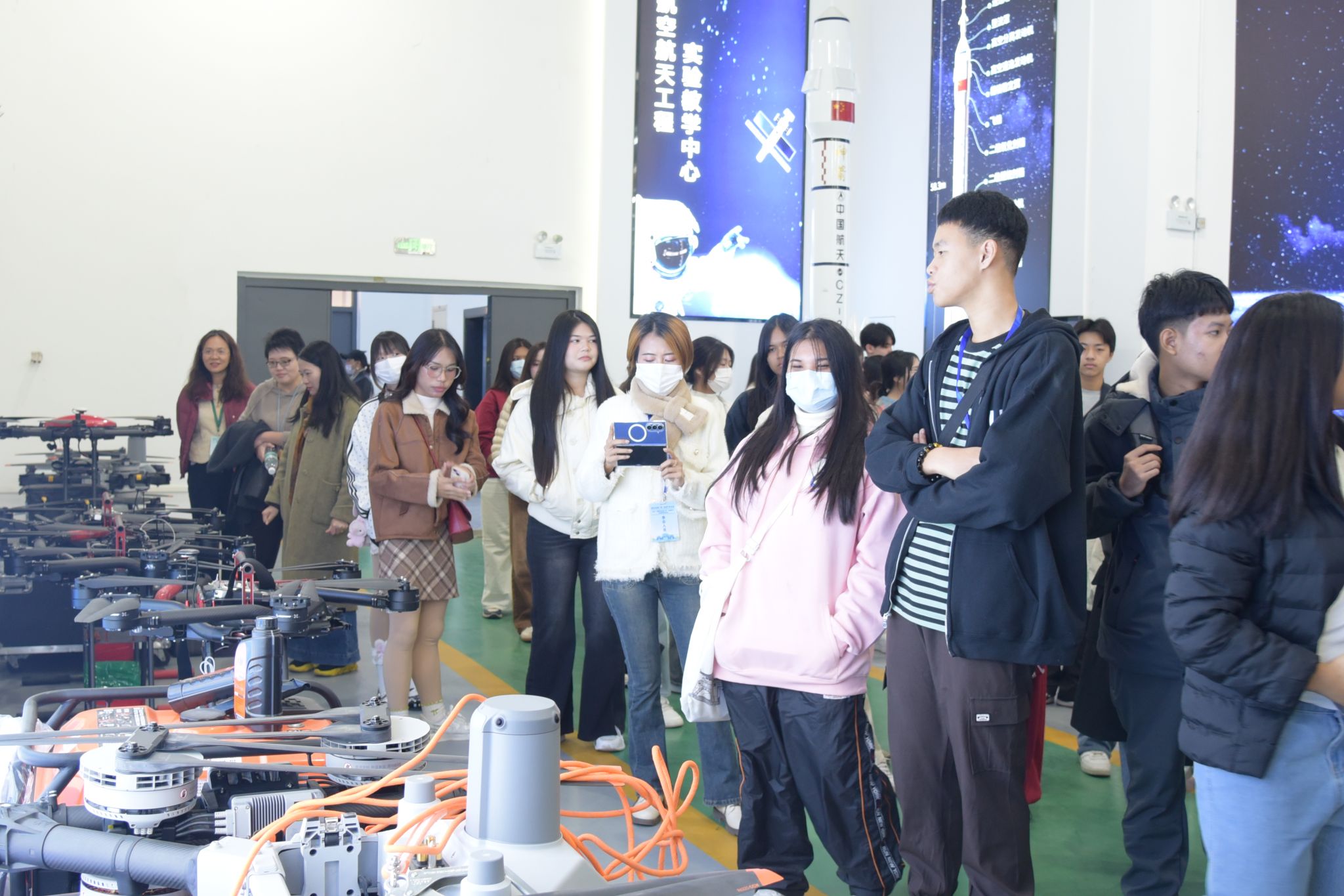 欢迎仪式后,研学营师生开启了丰富的校园体验之旅。在航空航天实验教学中心,师生们近距离观摩了无人机教学与科研设备,直观感受航空航天科技魅力;在观赏无人机飞行表演时,各式机型精准完成特效动作,引得现场师生阵阵喝彩;校史馆内,同学们通过图文资料与实物展品,感受学校源于航天、服务航天的办学初心和使命。