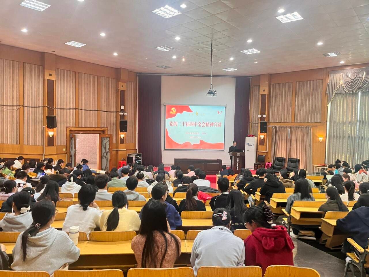 根据学校党委部署安排,12月11日下午,管理学院在北校区致远楼108教室召开党的二十届四中全会精神学习宣讲会。学院党委书记作宣讲,全院教师和学生党员200多人参加会议。