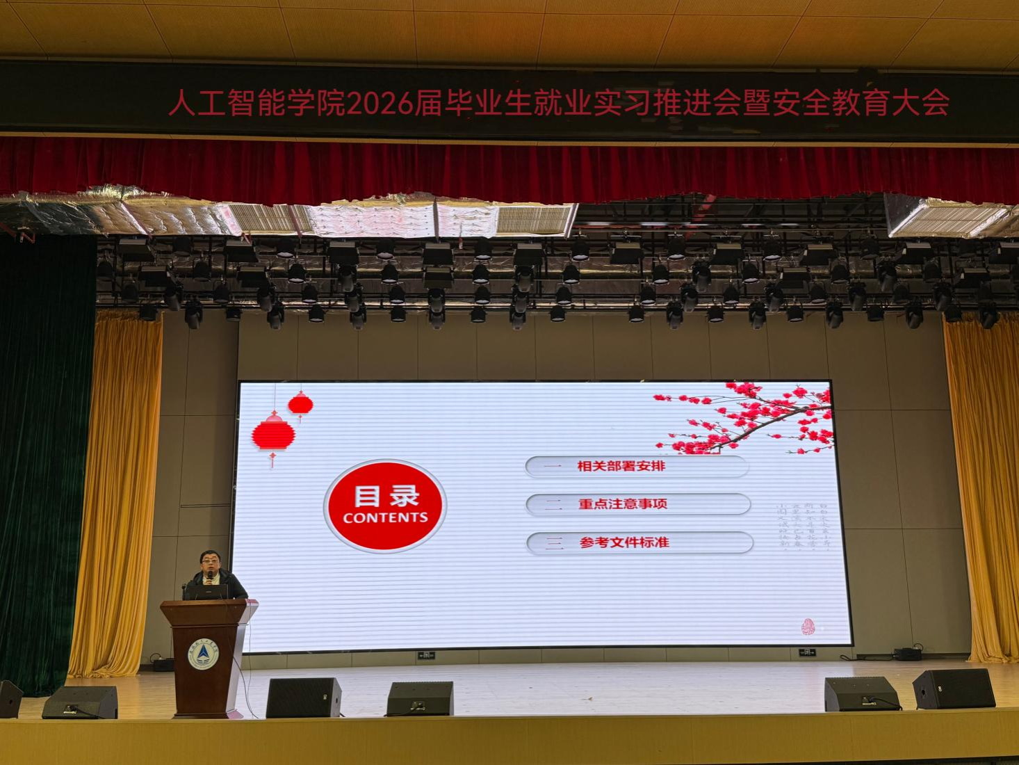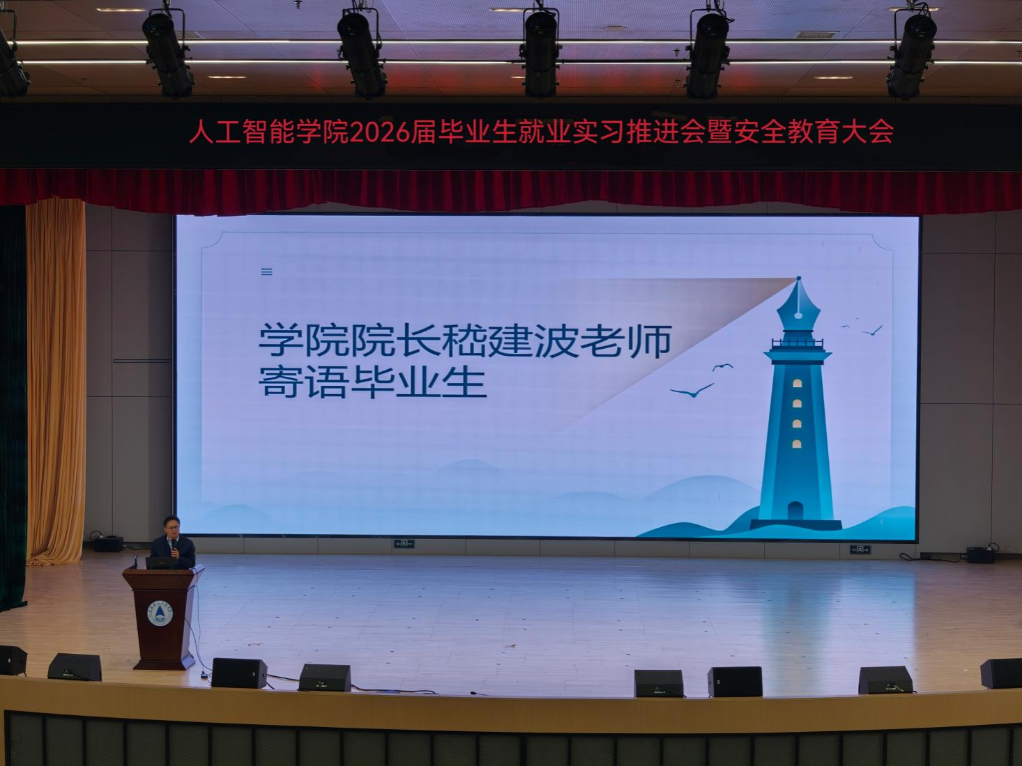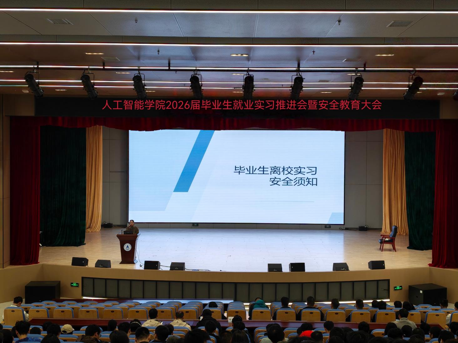为引导学生顺利完成学业衔接,安全高效开展毕业设计和毕业实习工作,为未来职业发展奠定坚实基础。12月11日,人工智能学院在南校区图书馆报告厅召开2026届毕业生就业实习推进会暨安全教育大会。学院院长及相关负责人、2026届毕业班辅导员及全体毕业生共同参加了本次大会。