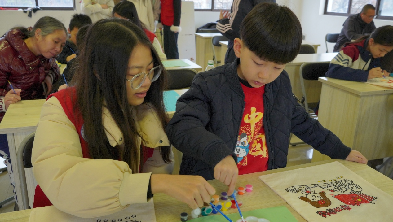 随后的“巧手学雷锋,童心向文明”手工制作环节将活动推向高潮。在志愿者的协助下,孩子们手持画笔,在印有雷锋元素的布袋上尽情描绘心中的美好愿景。有的孩子精心勾勒雷锋形象,立志做助人的“大力士”;有的孩子绘满爱心图案,愿做照亮他人的“小太阳”。亲子携手、师生同行,色彩流淌间,雷锋精神在孩子们心中落地生根。活动最后,孩子们展示着充满奇思妙想的作品,脸上洋溢着满足与自豪的笑容。