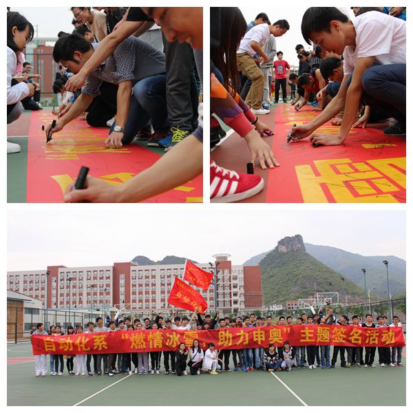 比赛接近尾声,团学干部纷纷拿起手中的笔在“燃情冰雪,助力申奥”主题签名活动的横幅上签下自己的名字,以实际行动从我做起,争做奥林匹克精神的传承者、实践者和引领者,为我国申办2022年冬奥会尽自己的一份力量。