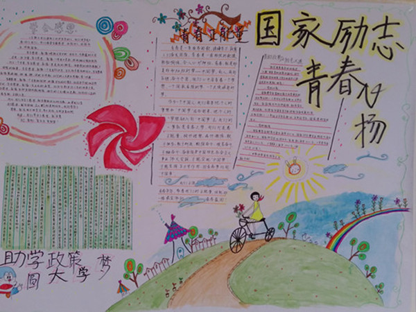 全系同学踊跃参加本次比赛,参赛作品色彩绚丽、内容丰富,既有宣传国家资助政策,明晰办理资助程序,又有结合学生个人经历,感恩国家资助、励志成才。经老师综合评定,共评出了7幅获奖作品,目前获奖手抄报作品在南校区实训楼5楼展出。