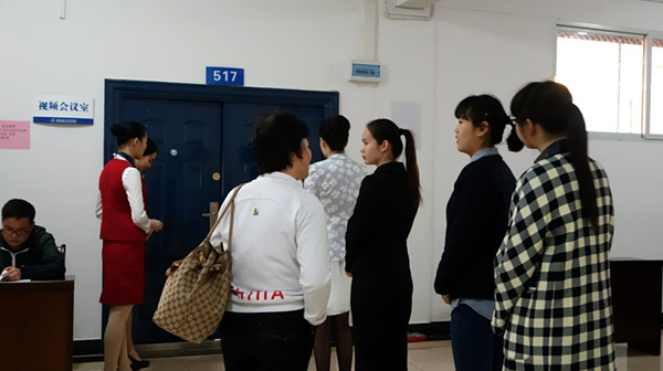 在3月28日pp电子航空服务专业招生现场,家长和考生们冒着大雨早早的来到了考场,在门前焦急的等待着。一位考生告诉记者,他一大早从桂林郊区县连转了三趟车来到桂航,淋了点小雨,但是想着今天的考试是接近梦想的第一道关卡,他就浑身有劲。还有几位考生是同班同学,互相结伴从柳州坐高铁过来参加面试,兜兜转转差点迷了路,最后在好心人的帮助下顺利到达学校。