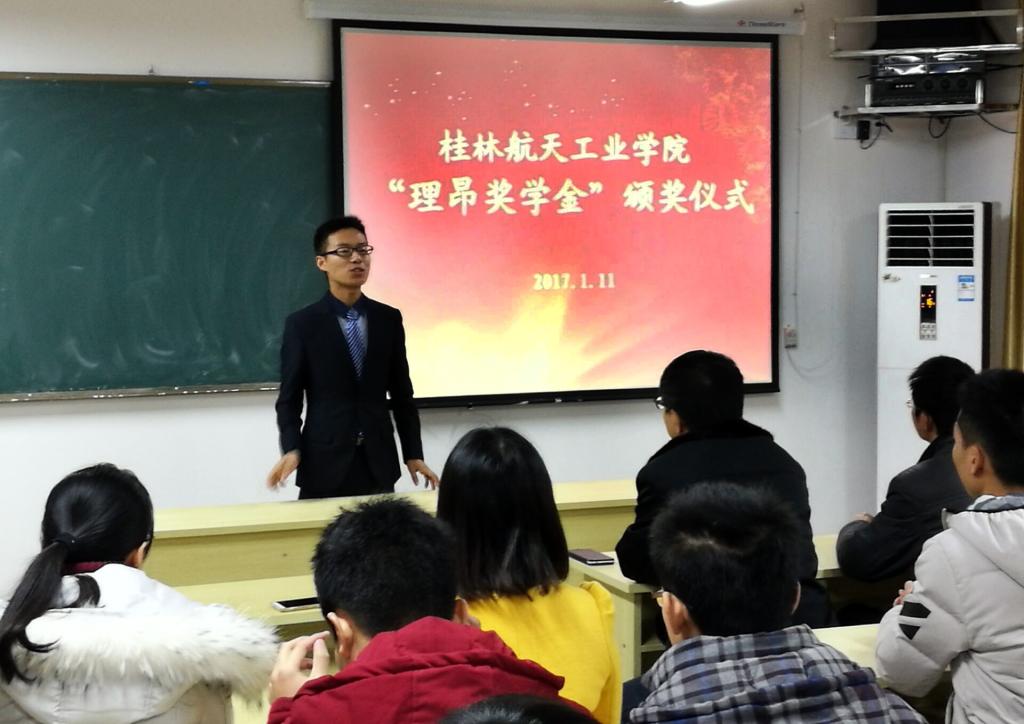 颁奖仪式中,理昂公司代表陈牛对获得“理昂奖学金”的同学们表示祝贺,同时也希望同学们树立目标、仰望星空、脚踏实地,在进入企业前就完成从“学校人”到“企业人”,再到“职业人”的心态转变,逐步培养“忠诚、效率、进取、团结”的职业素质。