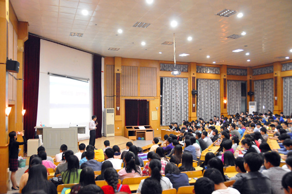 讲座中,蒋荣林围绕主题,结合个人工作经历,从三个方面为在场毕业生进行了讲解:首先,希望各位毕业生能够跳出校园看外部,用择业过程中的“望远镜”了解社会、看准方向;其次,希望各位毕业生充分了解自己的优势、劣势,用择业过程中的“显微镜”认识自我、做好定位;最后,希望各位毕业生用正确的方法做正确的事,用择业过程中的“钥匙”精心准备,成功求职。
