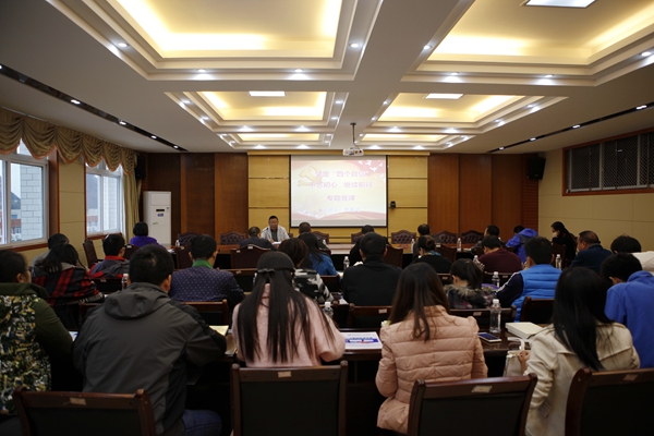 为深入开展“两学一做”学习教育,牢固党员干部的思想政治基础,帮助党员干部坚定理想信念,加强党性教育,11月8日,pp电子邀请思想政治理论课教学部主任罗展鸿教授为基层党支部书记上了一堂以“坚定‘四个自信’,不忘初心,继续前行”为主题的专题党课。来自全校各机关支部、教工支部、学生支部书记及支部委员40余人聆听了党课。
