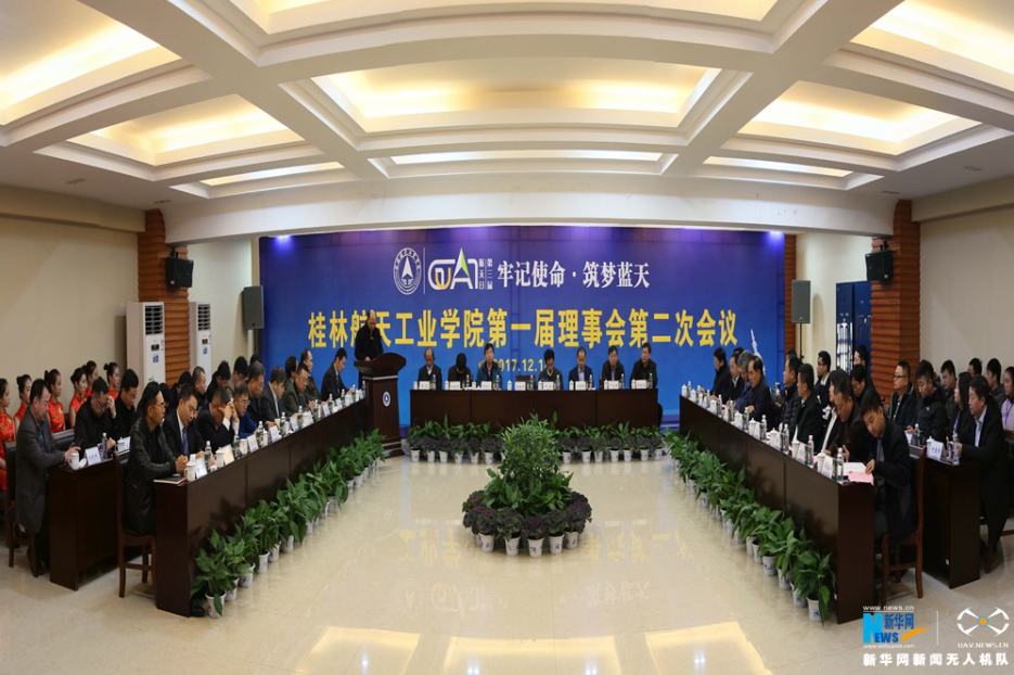 12月18日,广西pp电子官方网站入口举办“牢记使命·筑梦蓝天”为主题的第三届“航天日”活动。当日上午pp电子官方网站入口召开了第一届理事会第二次会议,新华网股份有限公司被学院聘请为理事单位,学院与新华网联合成立无人机学院,这成为广西首个产学研一体的无人机教学基地。