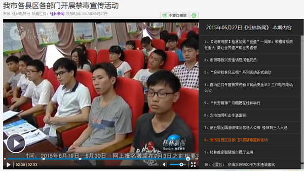 桂林电视台《桂林新闻》:我市各县区各部门开展禁毒宣传活动