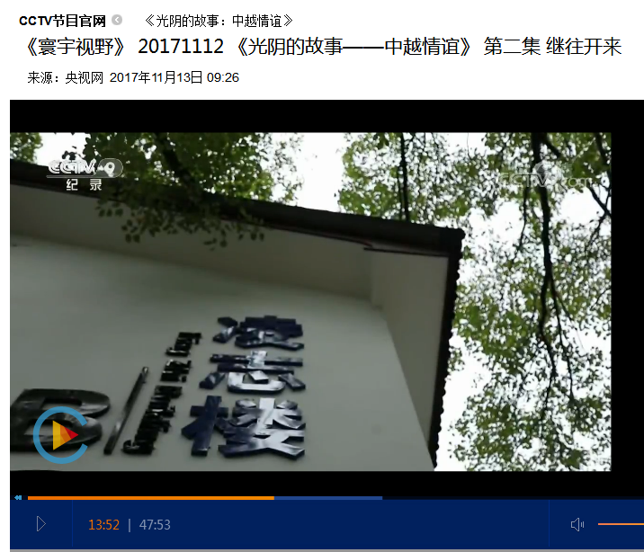 近日,中央电视台在pp电子取景拍摄的纪录片《光阴的故事-中越情谊》正式在央视播出,欢迎广大师生观看。