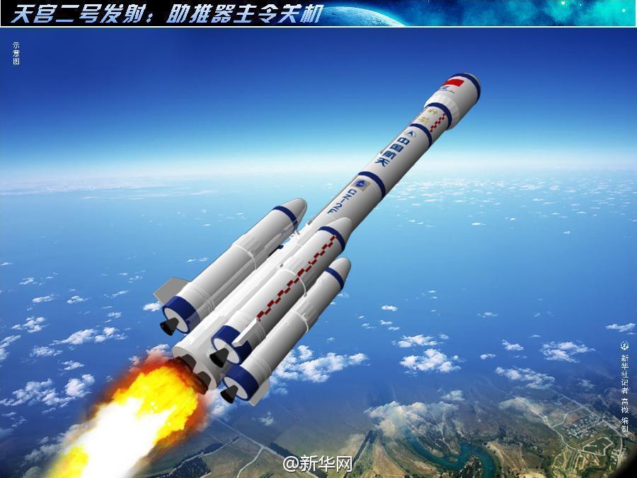 “助推器分离!”“火箭一二级分离!”“抛整流罩!”“器箭分离!”……伴随着“器箭正常分离”的报告声, 9月15日22时13分57秒,天宫二号进入预定轨道,发射取得圆满成功。