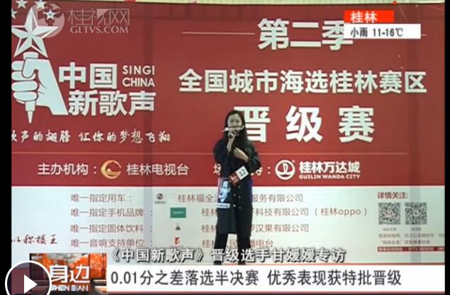 近日,pp电子大学生甘媛媛同学参加《中国新歌声》桂林赛区选拔活动,在比赛中排名第六,与晋级名额失之交臂。但她在比赛中的优秀表现获得评委一致关注,大赛组委会特别批准给予她晋级半决赛的资格,日前,桂林电视台《身边》栏目,对甘媛媛同学进行了专访。