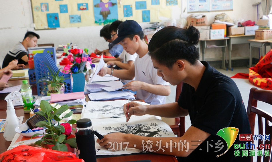 桂航大学生志愿者下乡支教,通过讲授书法绘画知识,来弘扬中华传统文化,传承书法国画经典,为孩子带来更多的知识与兴趣。志愿者们用“萤火虫”的精神,贡献自己青春的力量,与小朋友们一起共筑中华民族伟大复兴的中国梦。
