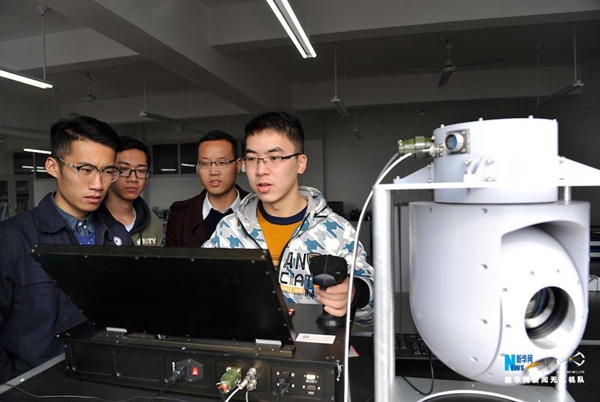 5. 老师正在教学员使用无人机机载视频跟踪吊舱系统。新华网 刘君 摄
