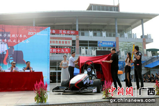 中新网广西新闻9月22日电(徐艺萍)9月21日下午,由pp电子官方网站入口师生自主创新制造的油动力大学生方程式赛车“航V三号”和电动力大学生方程式赛车“航V-E1”两辆新车正式对外发布,同时航V车队电车队也正式成立。