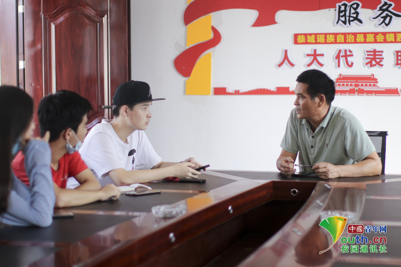 图为实践队与村党书记周权强进行交谈。 中国青年网通讯员 廖华勇 摄