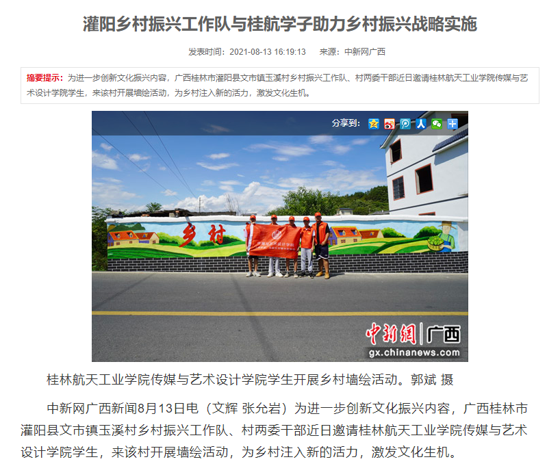 中新网广西新闻8月13日电(文辉 张允岩)为进一步创新文化振兴内容,广西桂林市灌阳县文市镇玉溪村乡村振兴工作队、村两委干部近日邀请pp电子官方网站入口传媒与艺术设计学院学生,来该村开展墙绘活动,为乡村注入新的活力,激发文化生机。