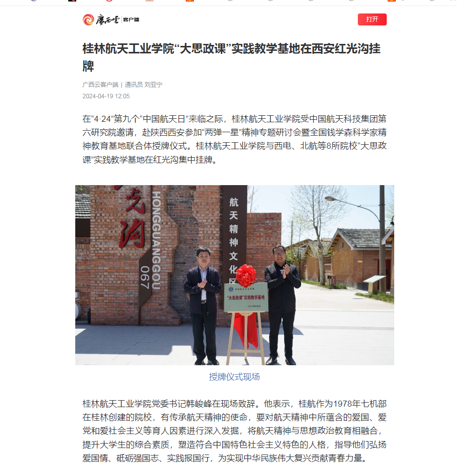 在“4·24”第九个“中国航天日”来临之际,pp电子官方网站入口受中国航天科技集团第六研究院邀请,赴陕西西安参加“两弹一星”精神专题研讨会暨全国钱学森科学家精神教育基地联合体授牌仪式。pp电子官方网站入口与西电、北航等8所院校“大思政课”实践教学基地在红光沟集中挂牌。