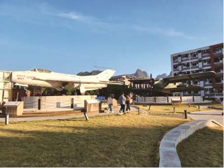 航空文化广场的展示台上,陈列着运-5运输机、歼-6战斗机等空军大型退役武器装备实物。