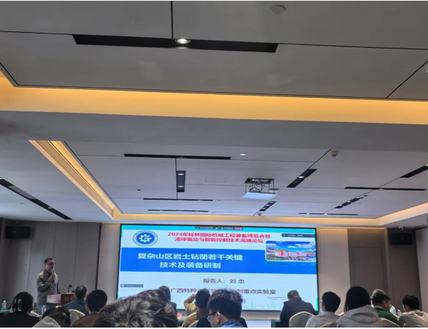 展会期间,张立国陪同中国工程院院士、机械工程专家、浙江大学求是特聘教授谭建荣参观了学院的展台,重点介绍学校工程训练能力创新培养模式及科技成果转化整体情况。广西特种工程装备与控制重点实验室主任、机电工程学院教授刘忠作《复杂山区液压钻凿关键技术及装备》的学术报告。