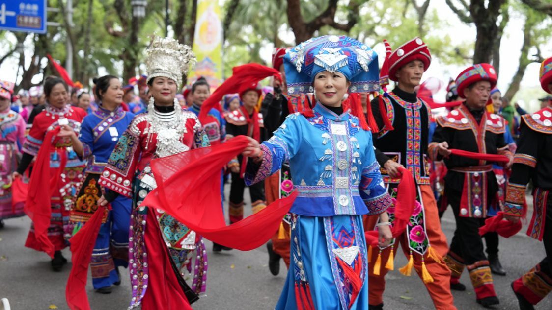 24级空中乘务1班的李连民同学表示:“在巡游过程中,现场热闹非凡的氛围让我深深陶醉。周围观众热情的目光和掌声,是对我们最大的肯定。我们与观众互动,与游客交流,分享对民族文化的理解,那一刻,我看到了大家眼中对三月三的喜爱和认同。”