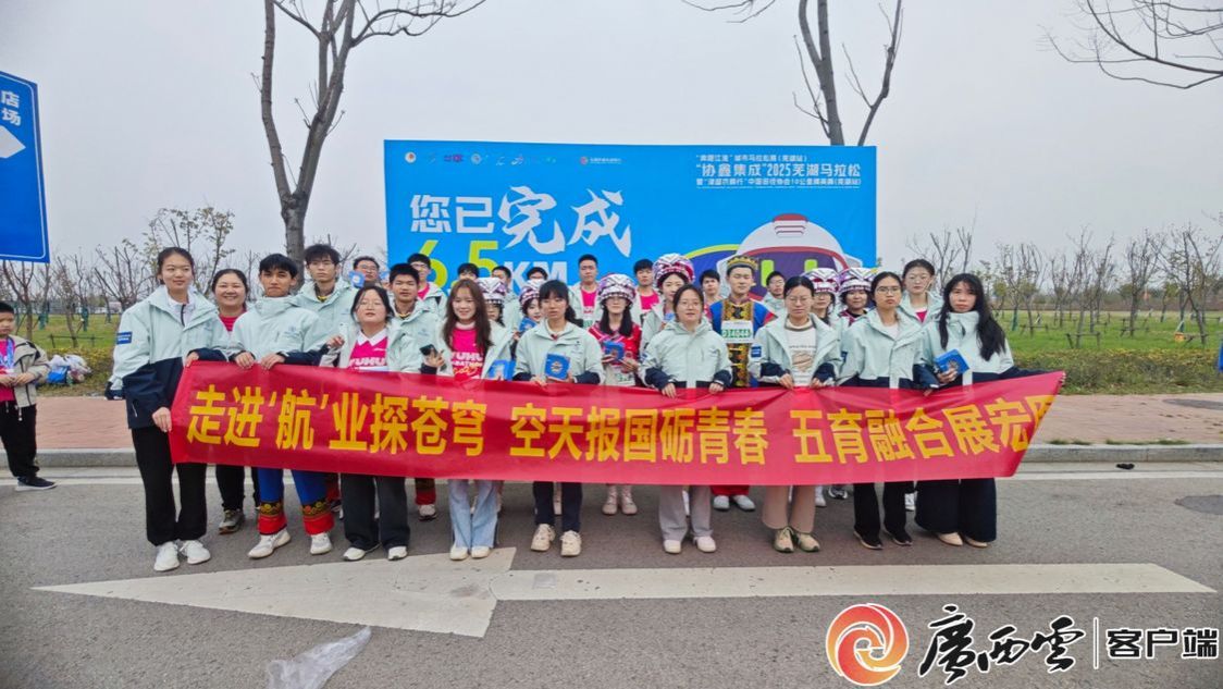芜湖马拉松是全国首个航空主题马拉松,2024年学校与芜湖马拉松联动,两地同时开跑,拉开校地政企新篇章。2025年3月30日,此项合作“升级”,两地马拉松欢乐跑同步开跑的同时,钱学森班师生报名参加了芜湖马拉松欢乐跑活动。在奔跑的过程中,学子们不仅挑战着自己的体能极限,更在意志上得到了一次深刻的锻炼。此外,活动举办期间恰逢广西三月三传统节日,同学们将广西传统民俗文化带到了芜湖马拉松活动现场,学子们身着少数民族服装,唱响山歌、献上绣球、送出祝福,为活动增添了广西特有的民族风情,参加活动的选手和观众的赞叹声络绎不绝,纷纷用手机记录下一幕幕美好瞬间。