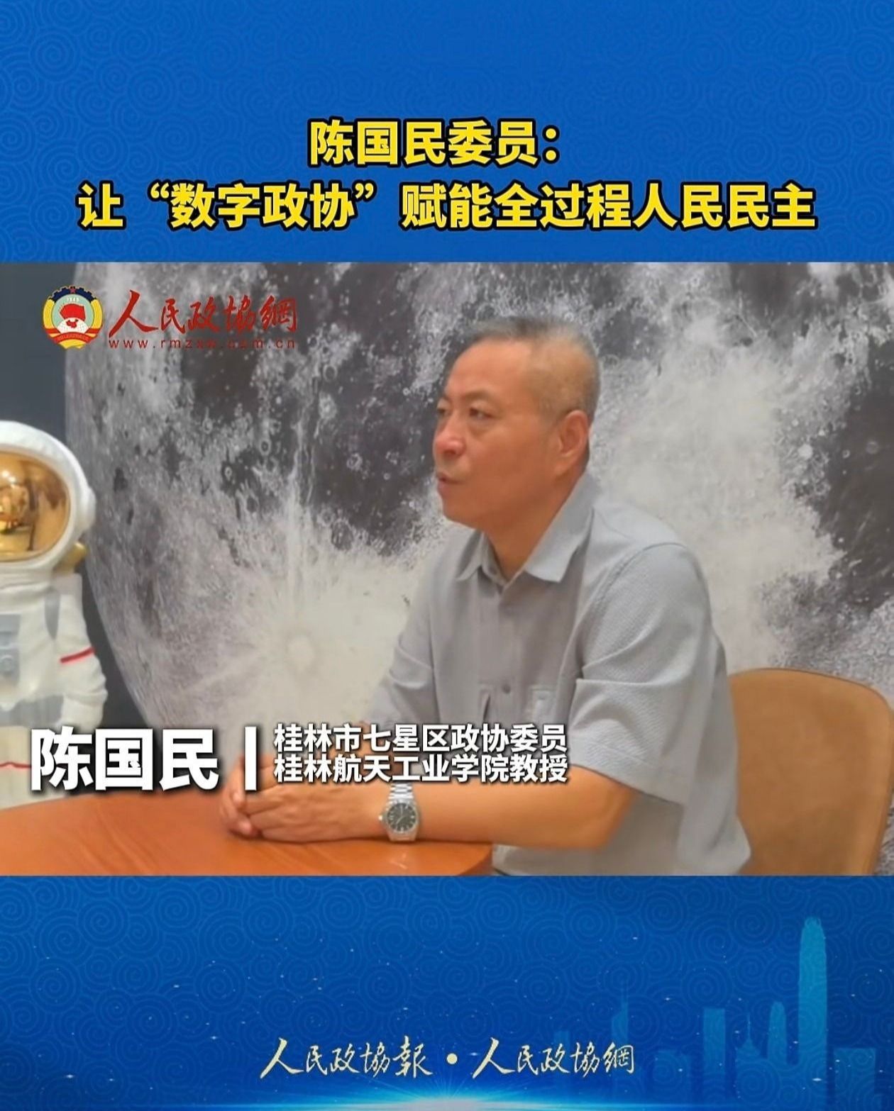 近日,《人民政协报》视频号刊载pp电子民盟盟员陈国民教授的视频。作为扎根地方的高校学者与基层政协委员,陈教授围绕“数字政协赋能人民民主全过程”主题,结合地方治理实践展开深度论述,其专业视角与务实建议引发广泛关注。